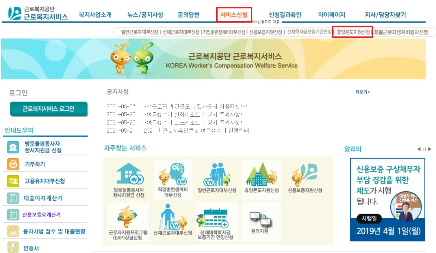 신청하기 위해서는 근로복지서비스 홈페이지에서