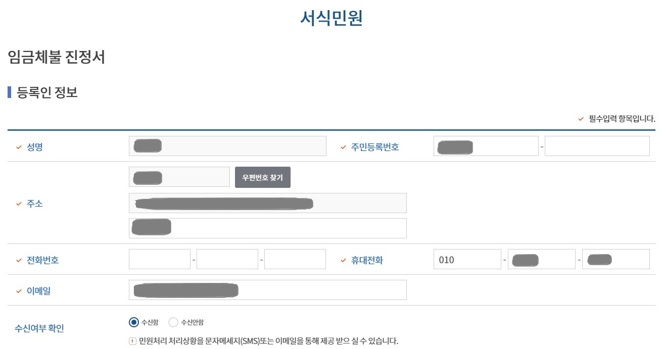 신청을 누르면 진정서를 입력하는 페이지로 넘어갑니다.