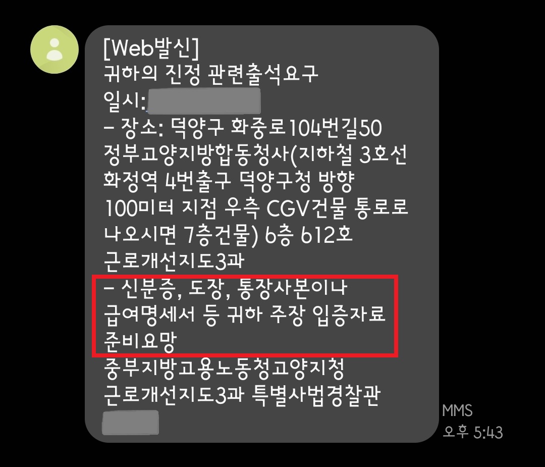 진성서를 제출하게 되면 고용노동부에서 사전 전화가 옵니다.