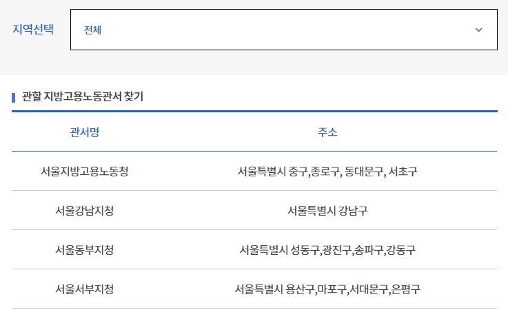 만약 회사가 서초구에 있었다면, 서울지방고용노동청으로