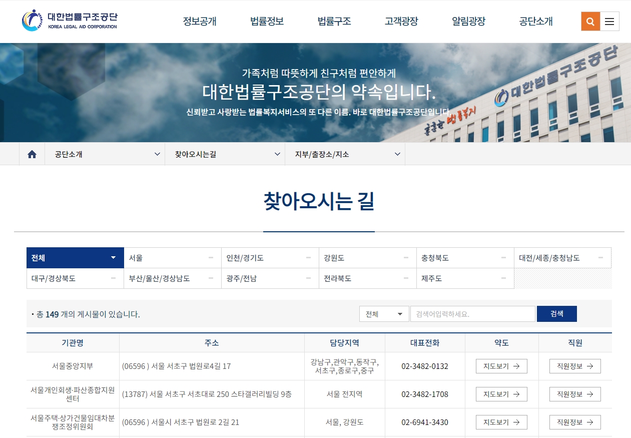 나의 지역 법률구조공단 찾기!