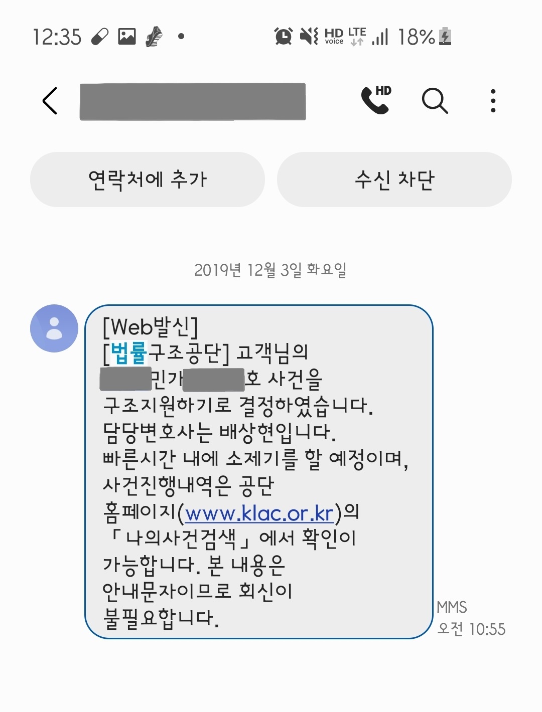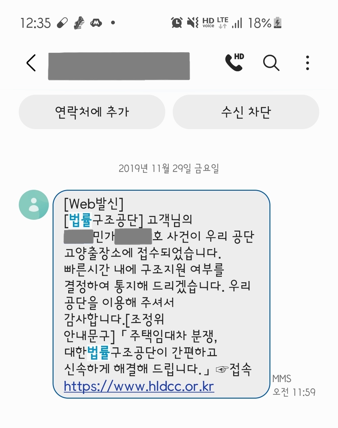 문자로 받으셨던 내용 중에 법률구조공단 사건 접수