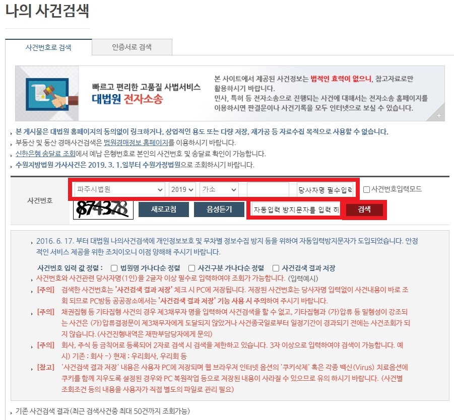 위와 같이 사건번호를 입력하는 곳이 생기니다.